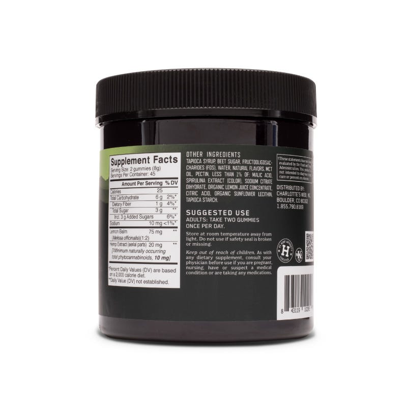 Formulated with our proprietary hemp genetics that feature naturally occurring phytocannabinoids, terpenes, flavonoids, and lemon balm in every bite, our Charlotte’s Web™ hemp extract gummies help: