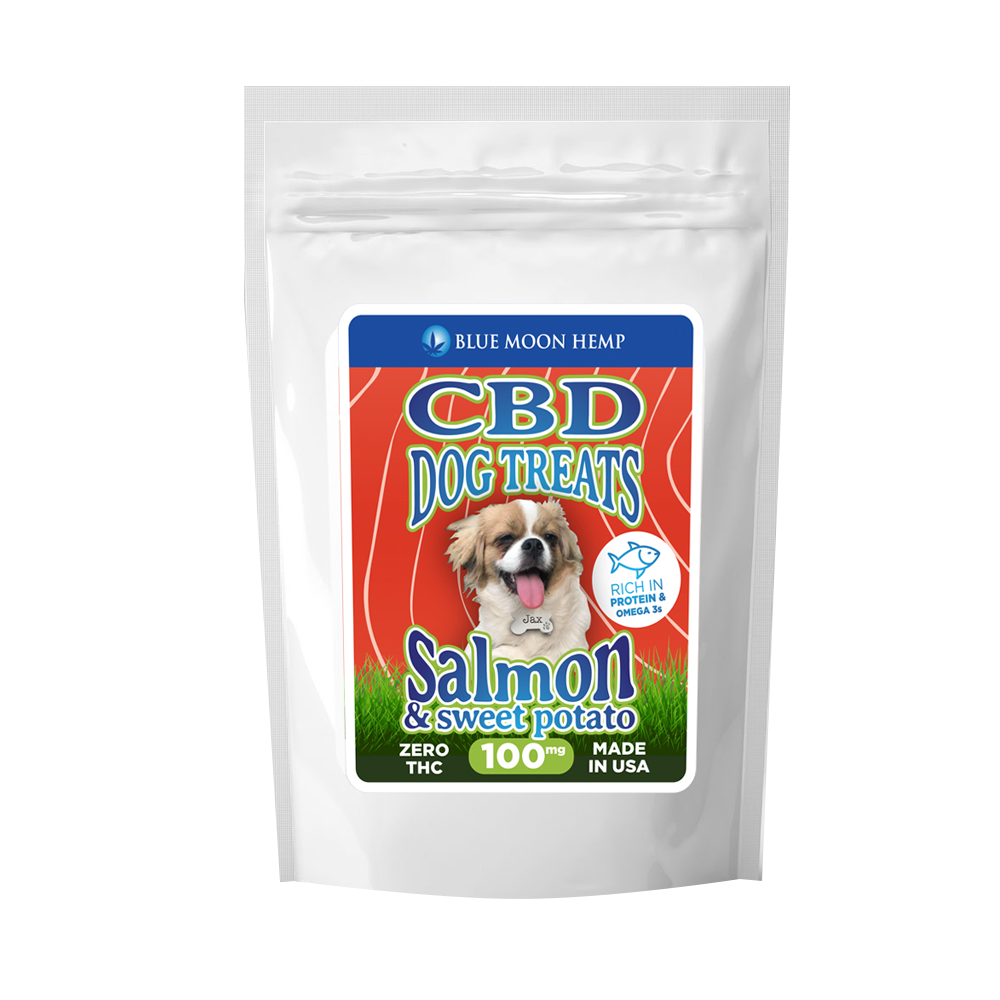Give your furry friend what they deserve with these CBD-infused pet treats. Our Blue Moon Hemp’s CBD Dog Treats are designed with only one thing in mind — your pet’s health. CBD, Savory Salmon and Sweet Potatoes make a delicious yet beneficial treat to put your pups at ease. Rich in protein and omega 3, these are a delicious and nutritious way to restore balance for your pet!
