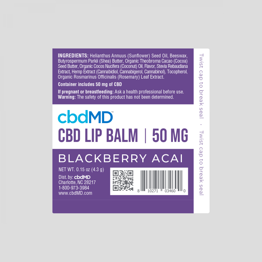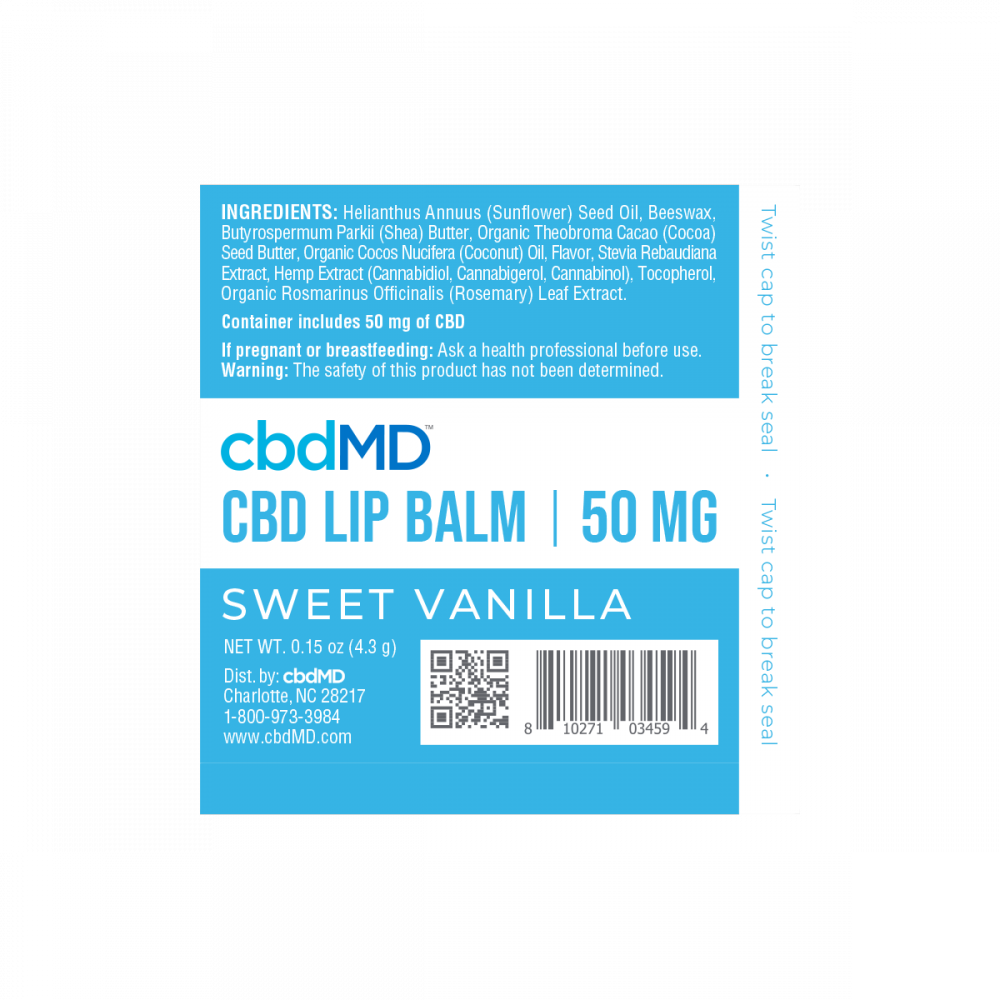 - CBD lip balm formulated with hemp extracts, cocoa butter and other soothing agents to keep lips soft and smooth